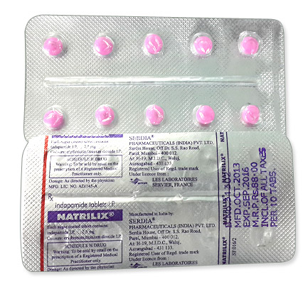 Dieses Medikament ist als 1.5 mg und 2.5 mg Tabletten erhältlich und wird sowohl in der Standard- als auch in der retardierten Form angeboten. Indapamid gehört zur Gruppe der sulfonamid Diuretika, die durch die Hemmung der Natriumrückresorption wirken und so eine Erhöhung der Natrium- und Chloridausscheidung bewirken. Dabei werden die Blutdruckwerte gesenkt, ohne die Lipidprofile negativ zu beeinflussen.