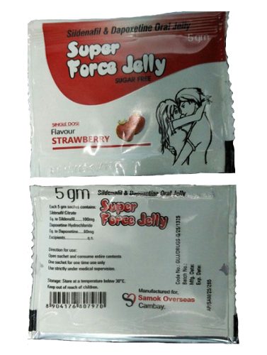 - Super Force Jelly wird zur Behandlung von erektiler Dysfunktion und vorzeitiger Ejakulation eingesetzt. Das Medikament wirkt als PDE5-Hemmer und SSRI.